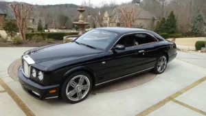 After VW’s takeover of the Bentley plant in Crewe UK1 some top Germans came to plant to see basically what they had purchased. They were blown away by the craftsmanship of the people at Crewe. While in the sheet metal shop they saw a project undertaken by the metal crafters where they had taken a wrecked Bentley Azure convertible and grafted a very rakish metal roof to it. This added to a more slanted windshield harkened back to the swoopy shape of the original Bentley Continental coupe of the 1950s. The VW guys loved it, and it was shown at the next Geneva auto show to rave reviews. Anyway, after starting to build the new “small” Bentley with the VW W12 engine, VW engineers also revamped the 6.75-liter V8 Bentley motor (with 82% redesigned parts and twin turbochargers) it now put out 530 hp. It was decided to make a limited run of 550 of these new “Brooklands” coupes. They were built only in 2008-2009. They were pretty much all sold before they were completed and 32 made their way to the USA. This is a very dramatic car, both beautiful with its pillarless design and extremely great to drive. “It is large but in charge”, a friend of mine commented. Truly one of those automotive oddities that shouldn’t really exist in todays “throwaway” world of cars… but thankfully… it does.
